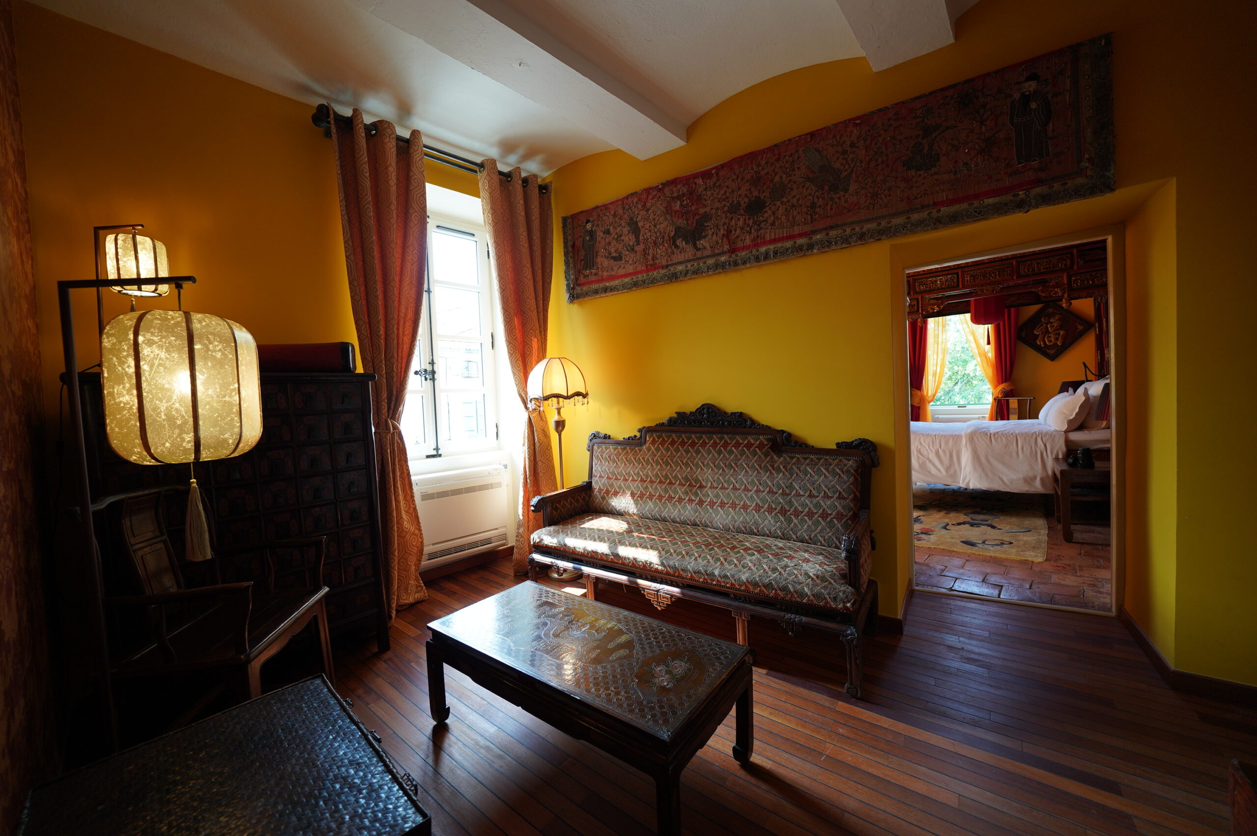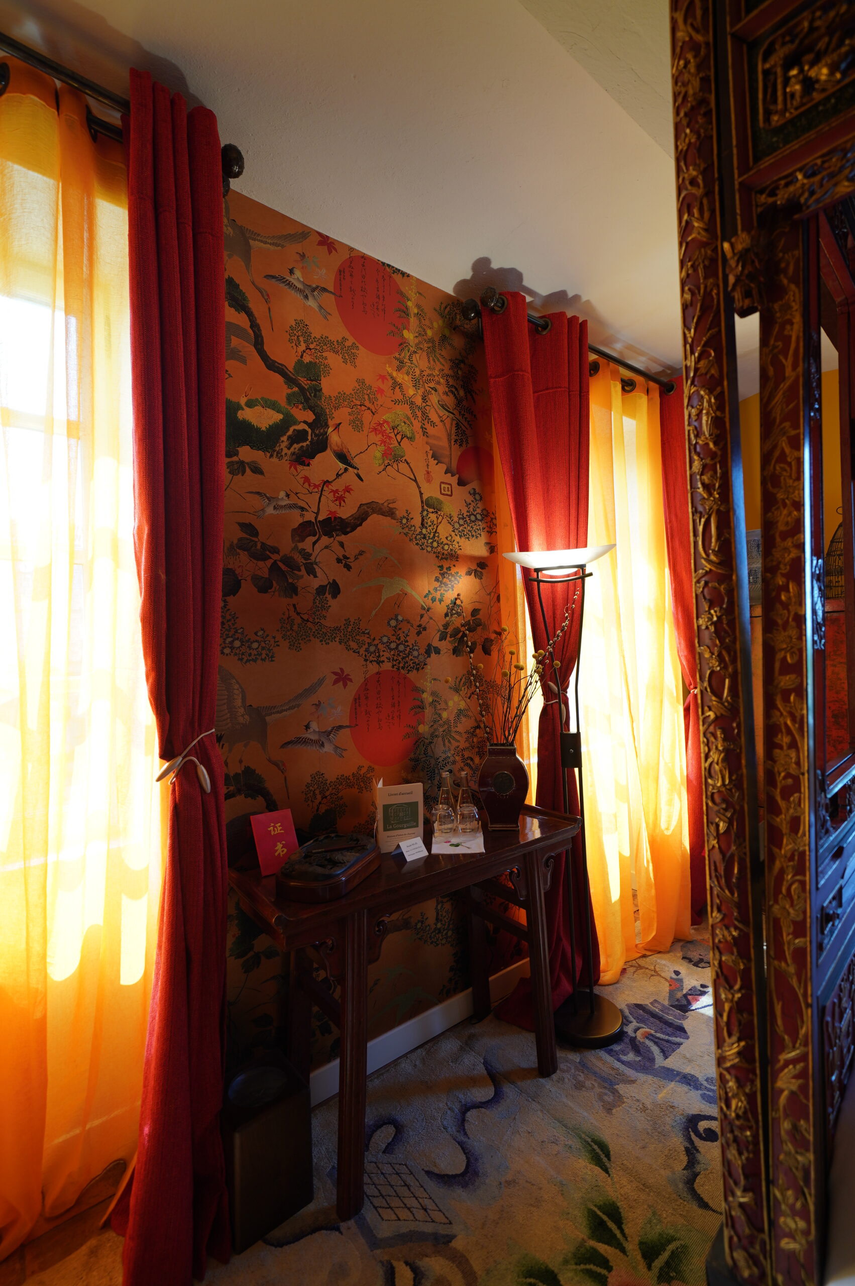 Exposition est par 1 fenêtre avec vue sur place de la fontaine. Sol en bois exotique, mobilier chinois 18ème et 19ème siècle, banquette.